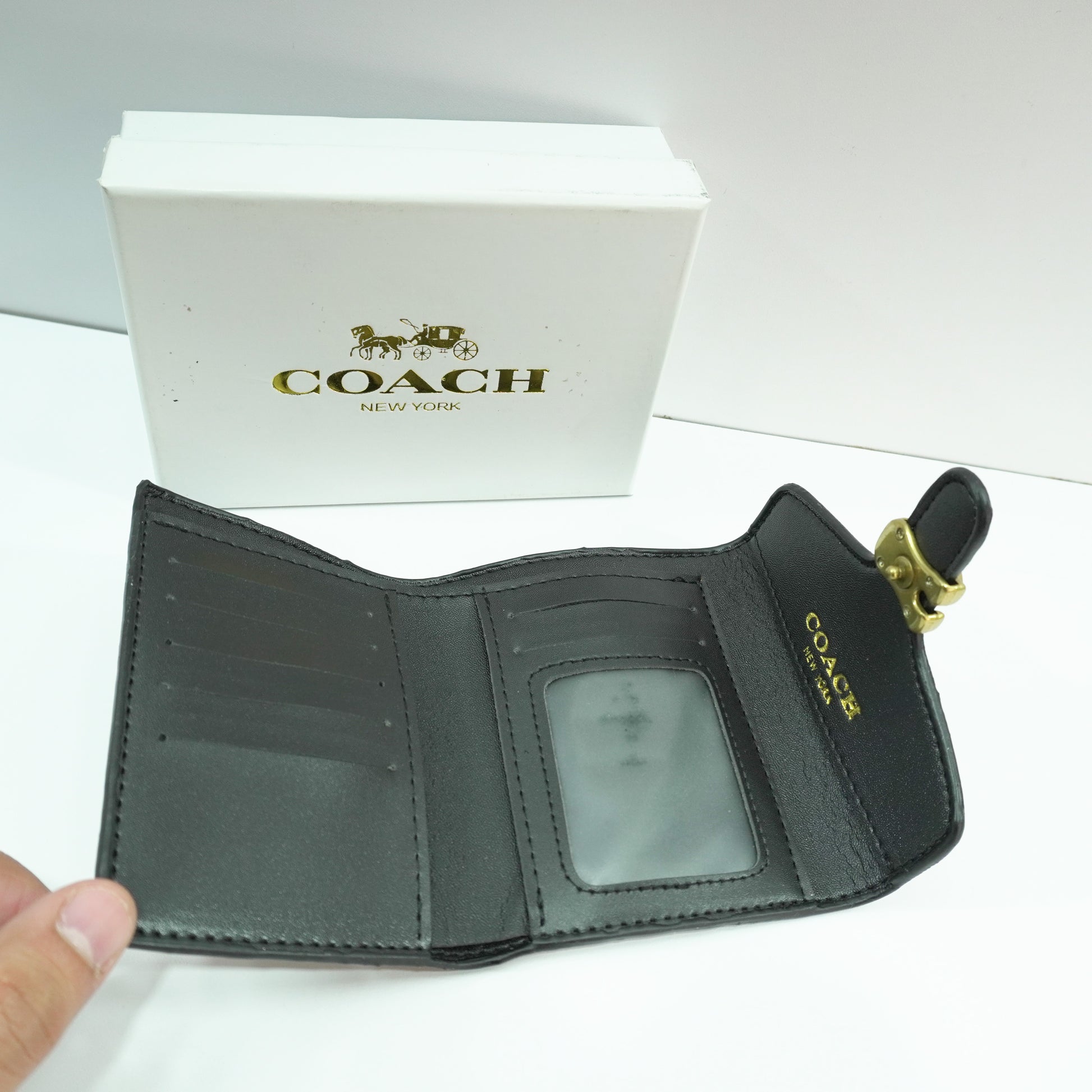 Inside, you'll find multiple card slots, an ID window, and a section for bills. The tri-fold design keeps everything neatly organized without taking up much space. There's also a snap-closure coin pocket on the outside for easy access to loose change.