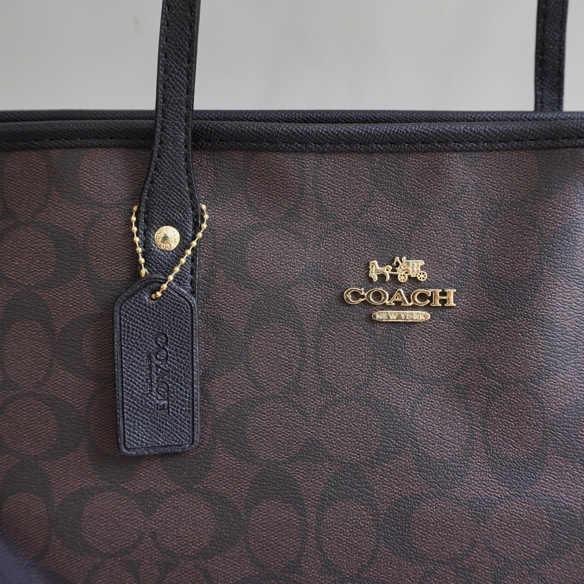 Details & Finishings: A gold-tone front emblem adds a polished accent, while the full-length zipper closure on top keeps belongings safe and secure.