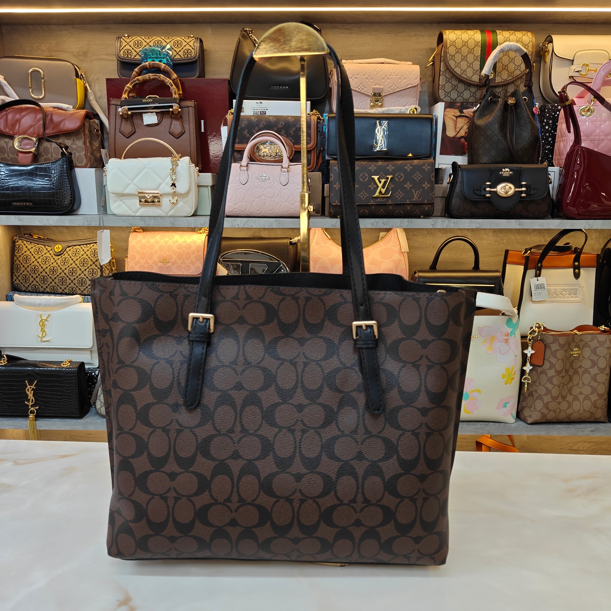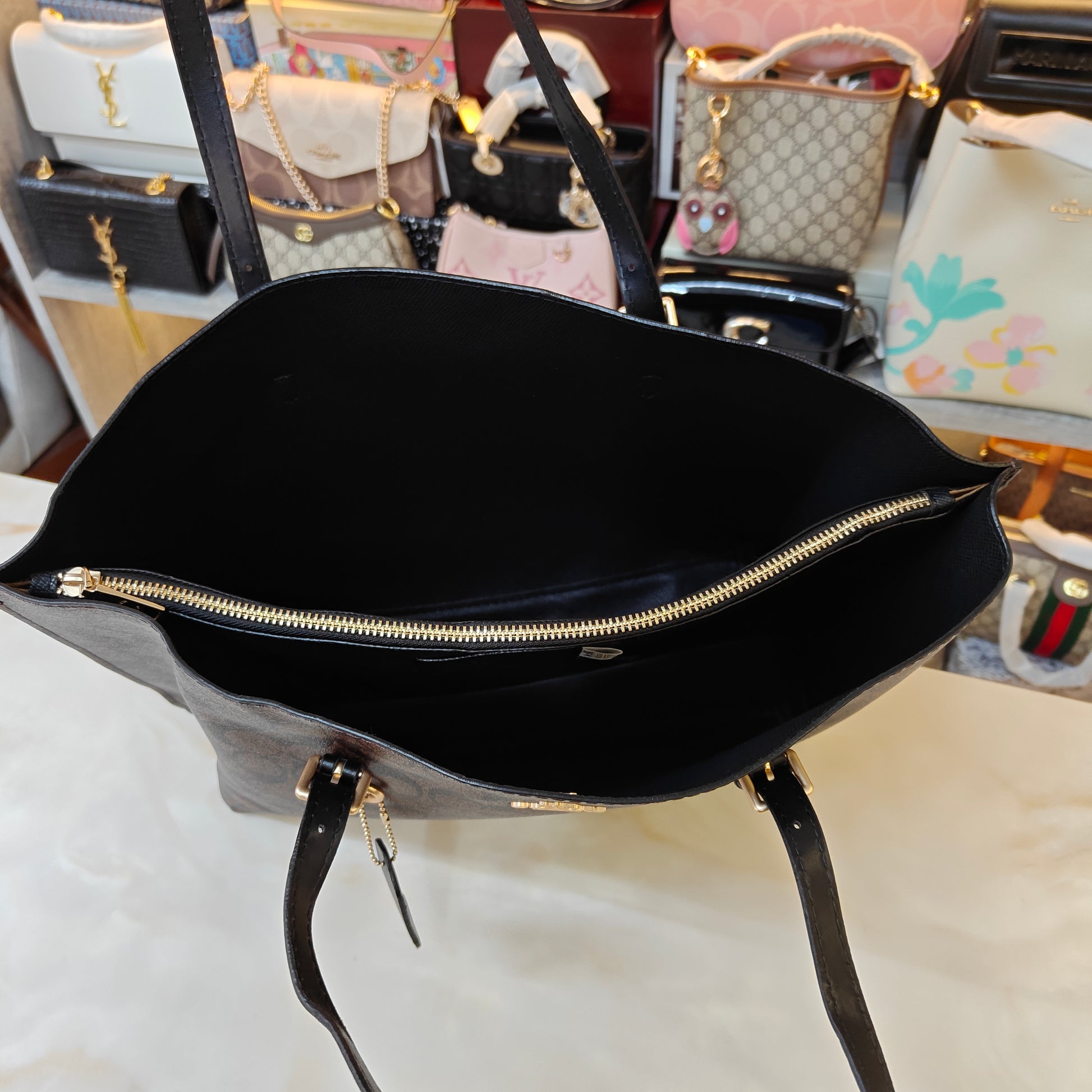 This classic tote bag features a dark brown monogram leather design paired with smooth black leather straps for a timeless and sophisticated look. The gold-tone hardware and logo emblem add a touch of elegance, while the spacious interior provides ample room for everyday essentials. Designed with both style and practicality in mind, it’s perfect for work, travel, or daily use. This piece effortlessly combines classic craftsmanship with modern functionality.