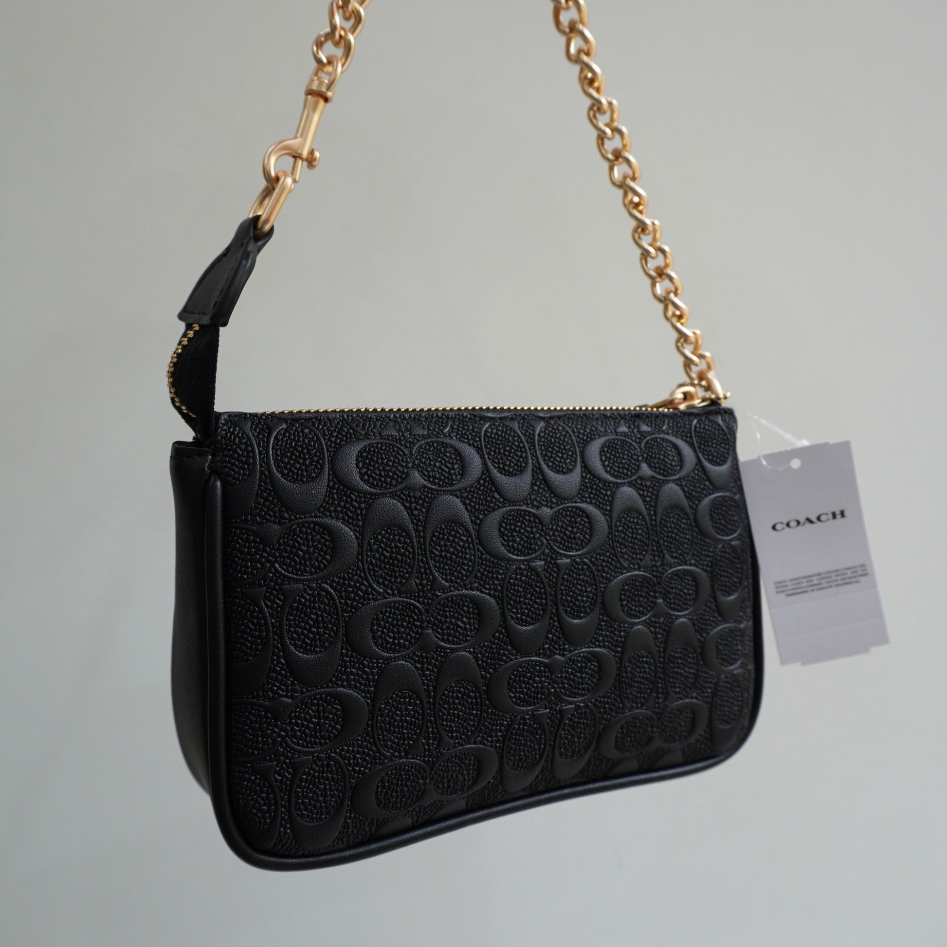 Add a touch of sophistication to your look with this chic mini shoulder bag, crafted in premium textured leather with an embossed signature pattern. The compact silhouette features a structured design, gold-tone hardware, and a luxurious chain strap for a statement finish. Its secure zip closure opens to a neatly lined interior with built-in card slots for everyday convenience. Ideal for both day outings and evening events, this versatile accessory blends style and practicality effortlessly.