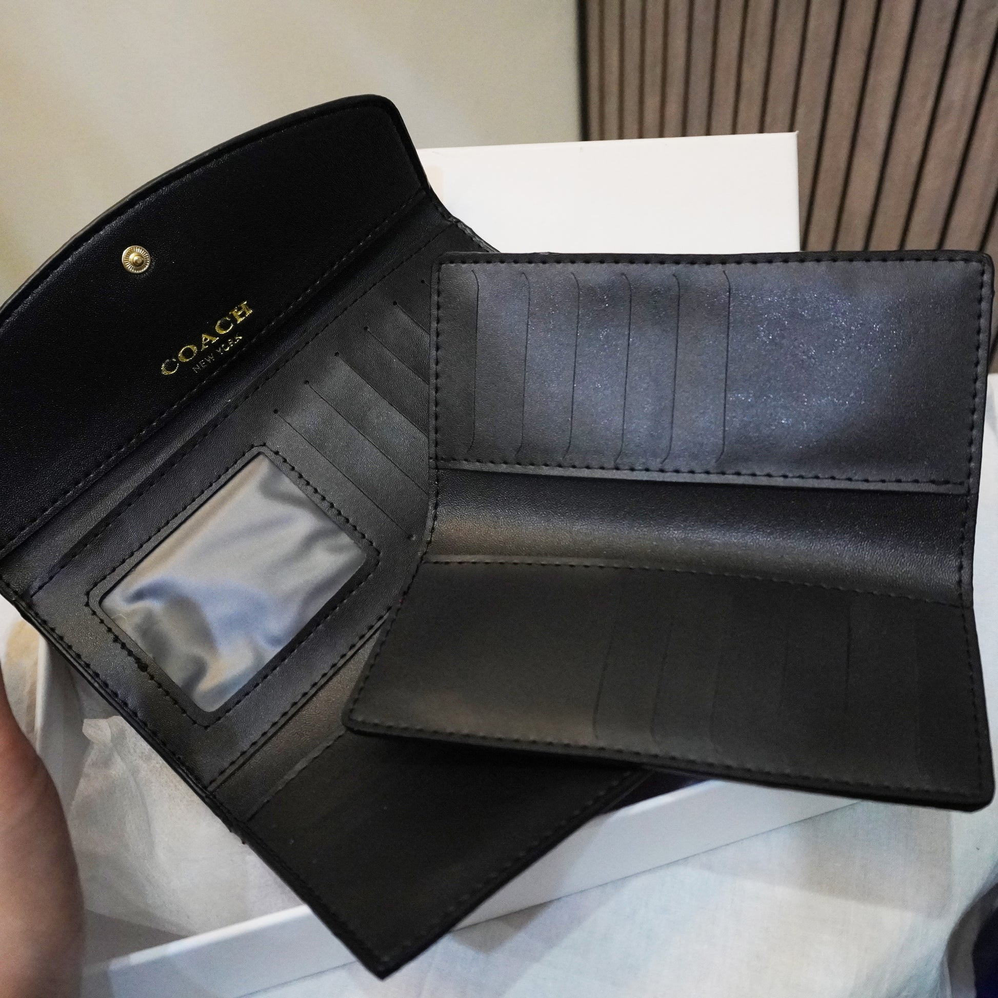 This classic trifold wallet features a vibrant color-block design with rich burgundy on the flap, a bold magenta center, and soft blush pink side accents—offering a perfect mix of elegance and personality. Designed with a secure button closure, the wallet opens to reveal a thoughtfully arranged interior including multiple card slots, an ID window, full-length currency compartments, and a removable insert for added flexibility. Crafted from durable textured material with fine stitching, this piece is ideal for those seeking style, organization, and everyday functionality.
