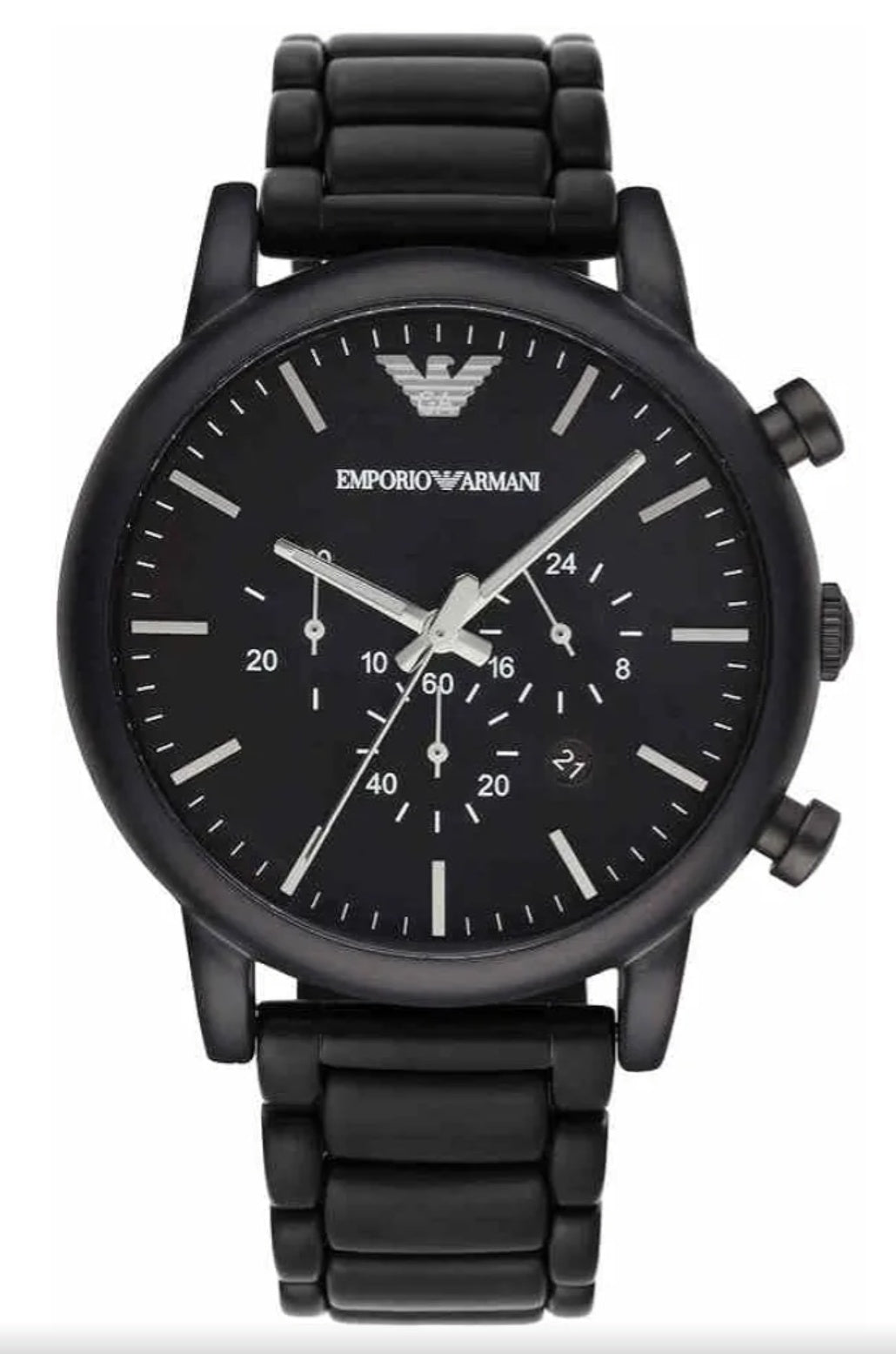 E A Stainless Steel Classic Analog Black Dial Men Watch, Black Band