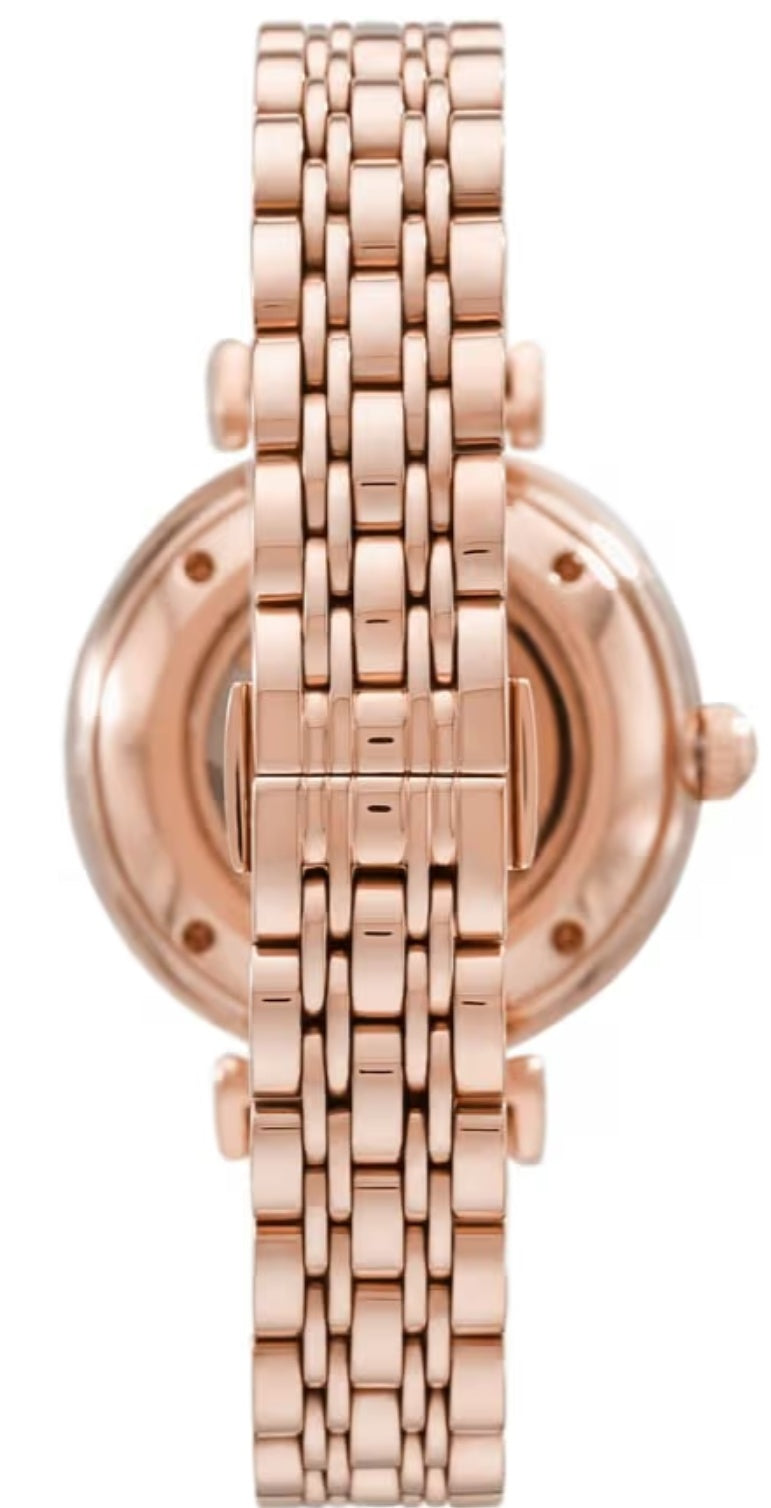 Rose gold plated stainless steel bracelet with bracelet deployant closure; interchangeable with E A14mm watch straps