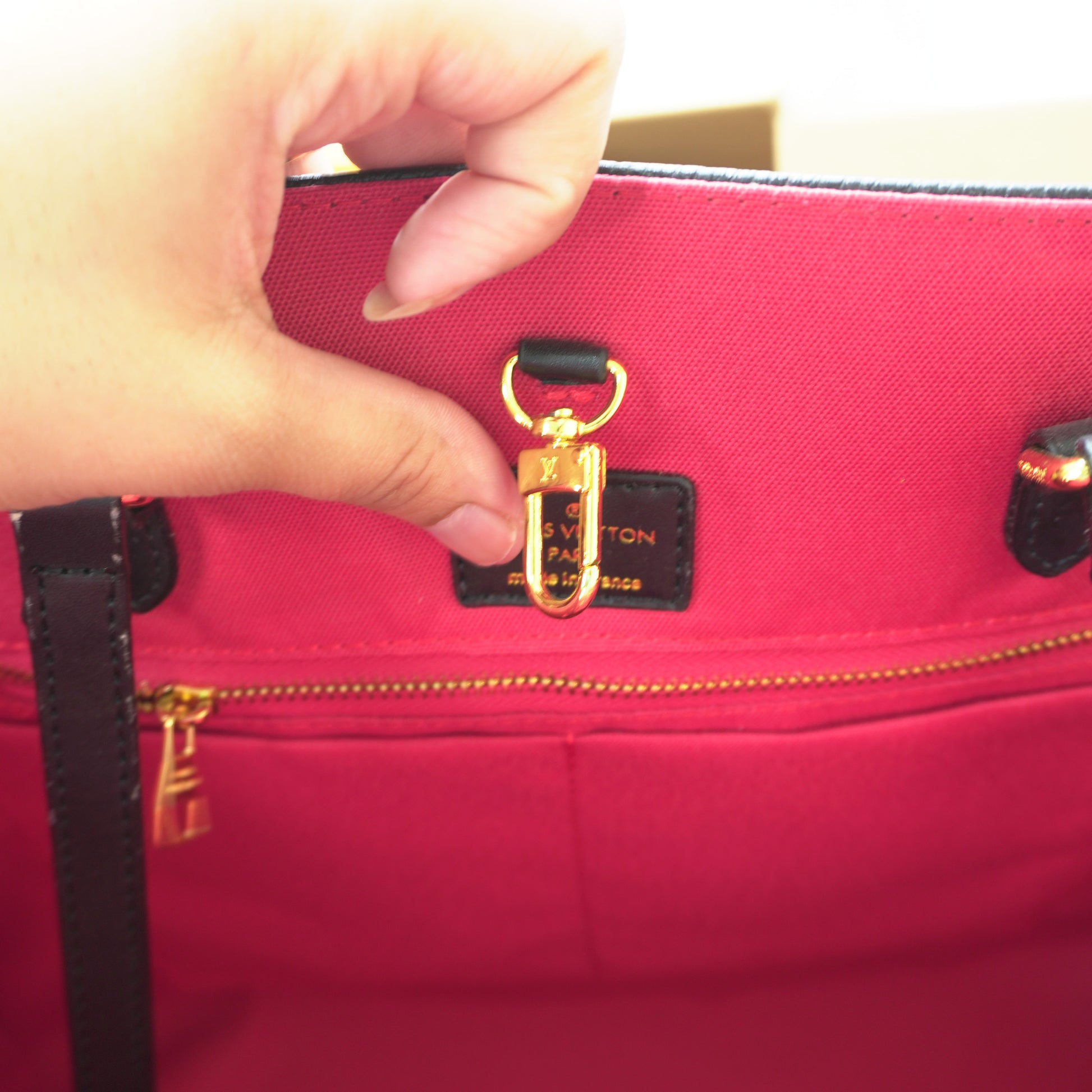 This oversized statement tote is crafted from textured black leather and features a bold beige monogram-style motif throughout. Designed with dual top handles and additional long shoulder straps, it offers flexible carrying options to suit your style. The spacious open interior is lined with rich red fabric and includes a secure zip pocket for essentials. With its structured silhouette and eye-catching pattern, this tote blends luxury aesthetics with everyday functionality—perfect for travel, shopping, or elevating your daily look.