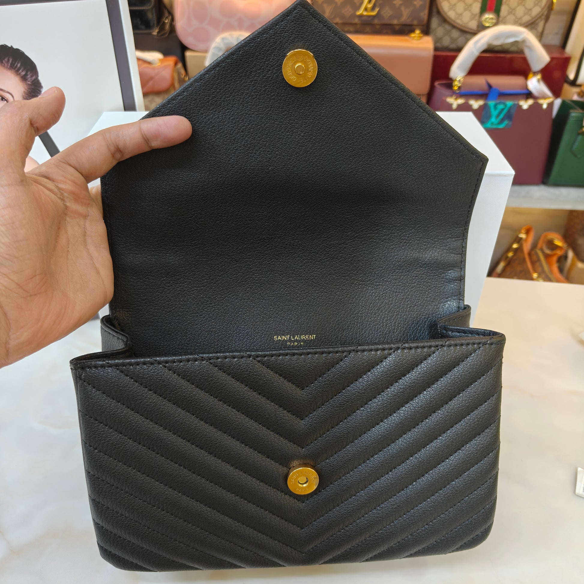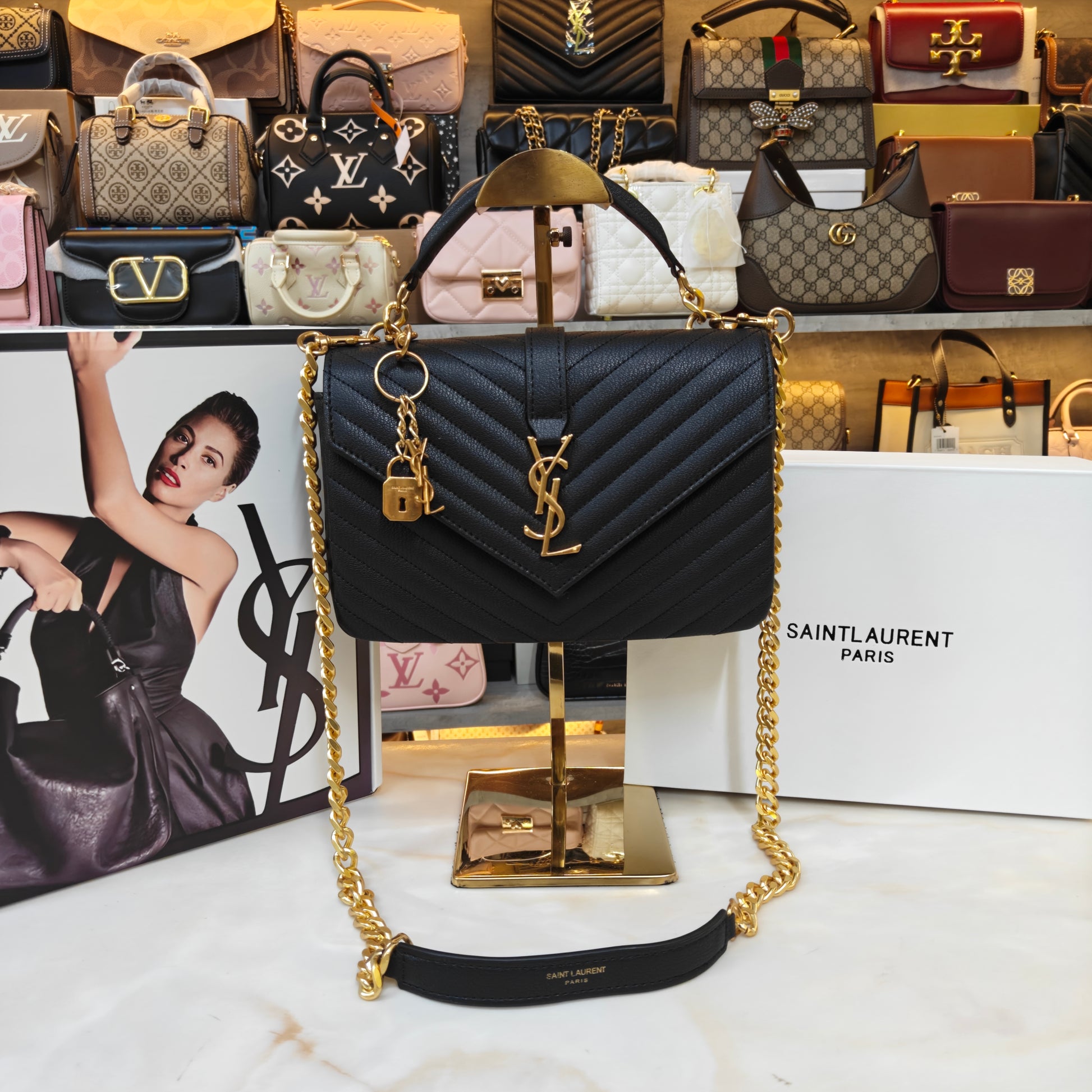YSL College Medium Matelassé V-Flap Crossbody Bag - Black (Ultra Premium Double Box)