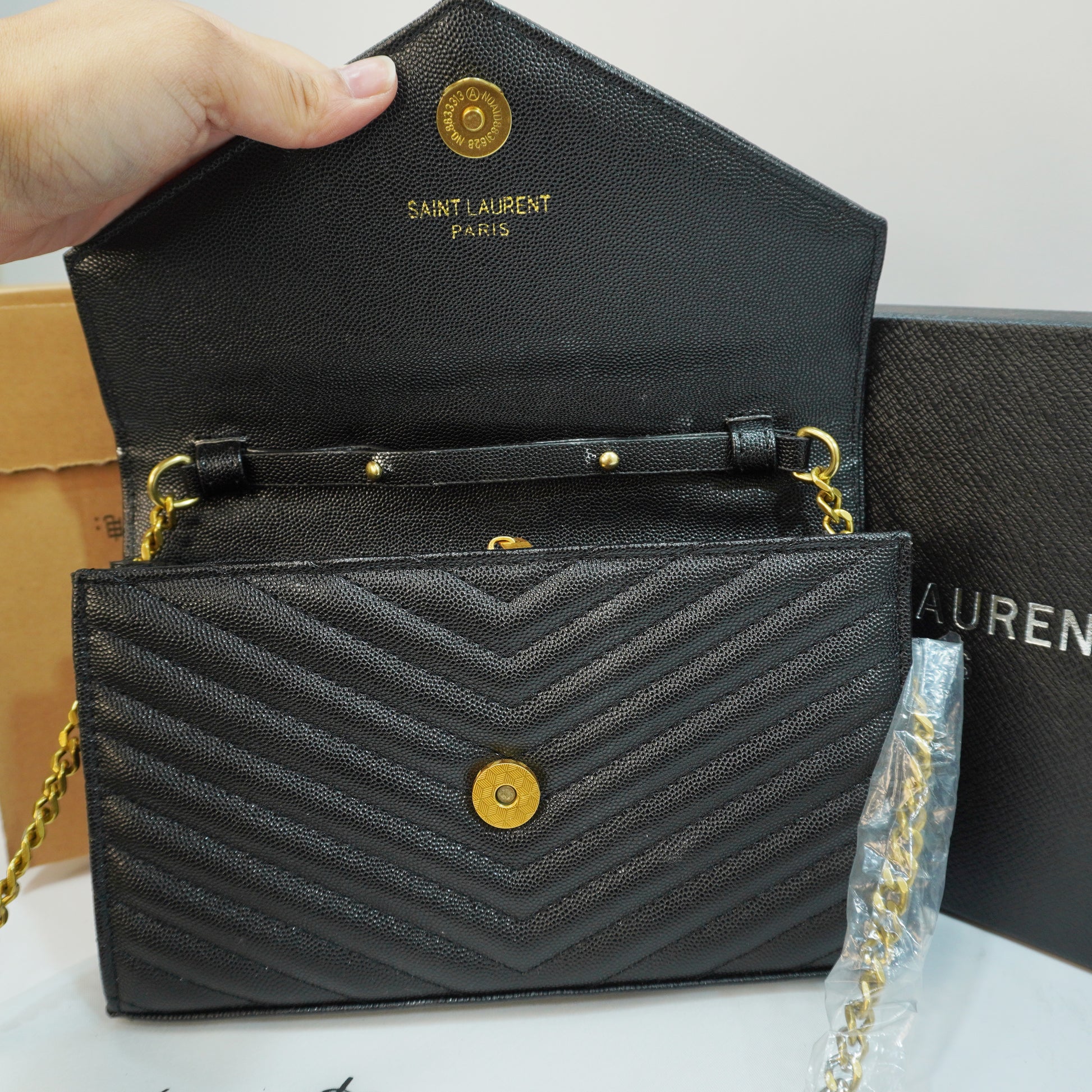 A luxurious statement piece in black, this chevron-quilted crossbody bag is designed to turn heads. Made with textured leatherette and detailed with a magnetic flap closure, it features a bold gold-tone chain strap for a glam touch. The structured form, clean edges, and sleek finish give it a polished look – perfect for both festive occasions and stylish evenings out.